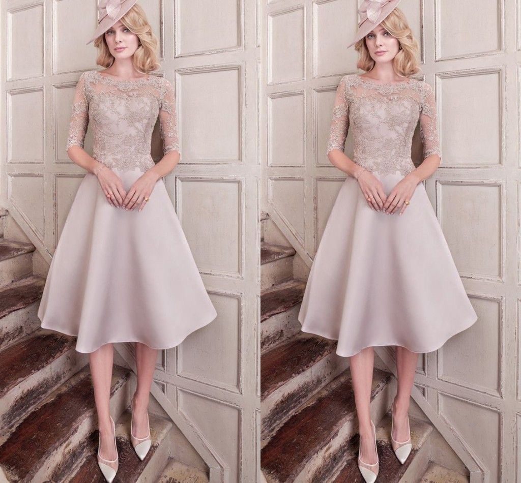 Elegant Mother Of The Bride Dresses Lace Satin Half Sleeves Knee Length Wedding Guest Dresses Formal Occasion Dresses Chiffon Mother Of The Bride
