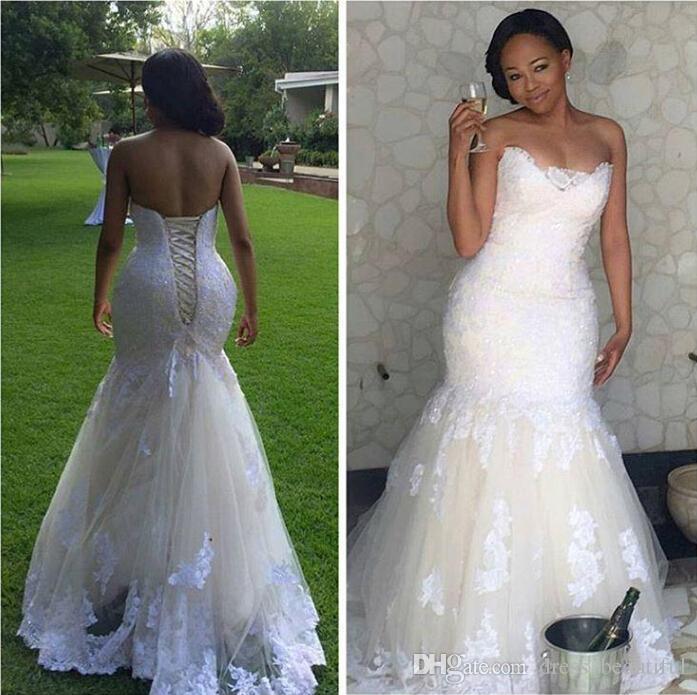 White Lace Mermaid Wedding Dresses Plus Size Bodice Corset Lace Up Back Sleeveless Wedding Gowns Sweep Train Bridal Dress