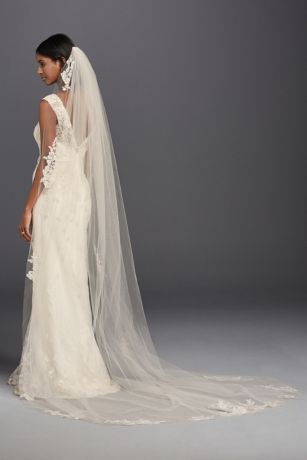 One Tier Sequin And Lace Cathedral Veil David S Bridal