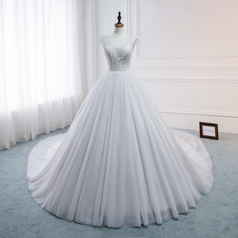 Hot Item Custom Beading Crystals Bodice Ball Gown Bridal Wedding Dresses 2018