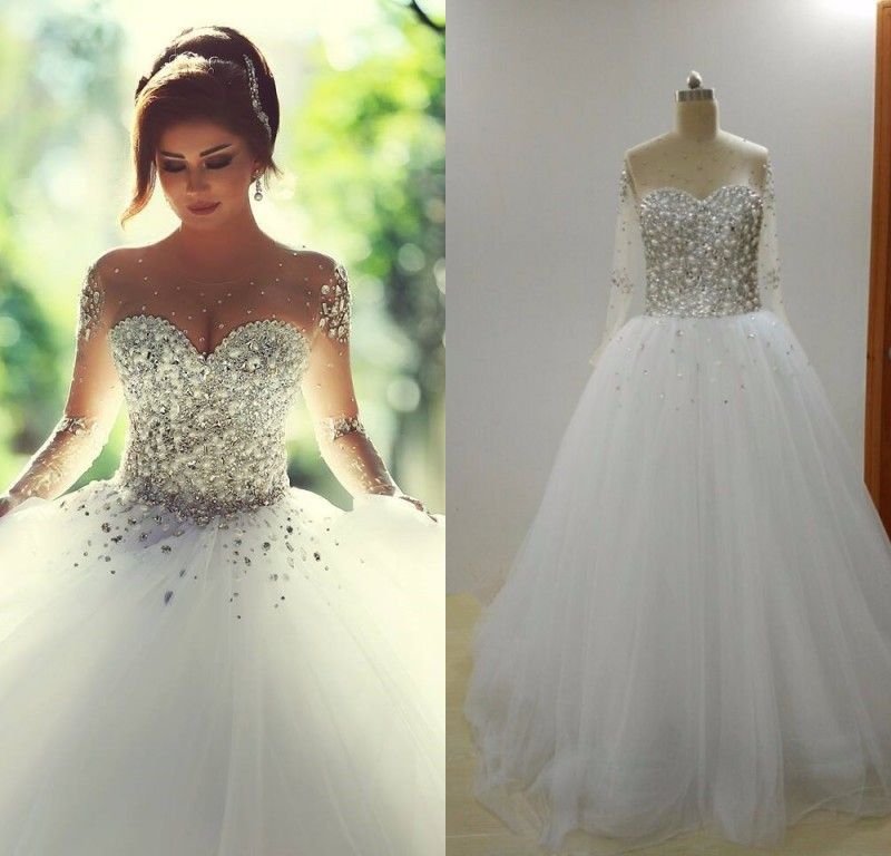 Crystal Beaded Bodice Long Sleeve Wedding Dress Ball Gown Tulle Skirt Bridal Dress Sparkly Wedding Gown Apd1726 From Diydresses