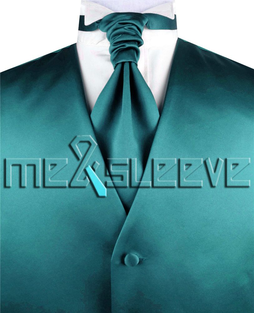 Hot Sale Free Shipping Plain Teal Wedding Dresses Online Vest Ascot Tie Cufflinks Handkerchief