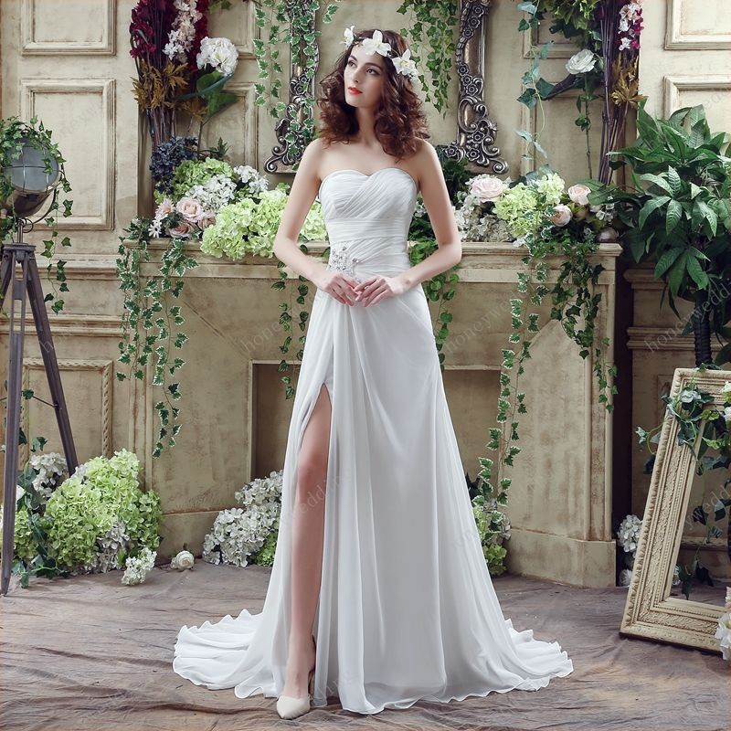 Discount Sexy Beach Wedding Dresses Under 100 Sweetheart Pleats Side Leg Split Cheap Bridal Gowns Boho Country Style In Stock Real Photo Wedding Gown