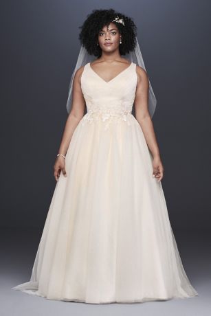 Appliqued Glitter Tulle Plus Size Wedding Dress