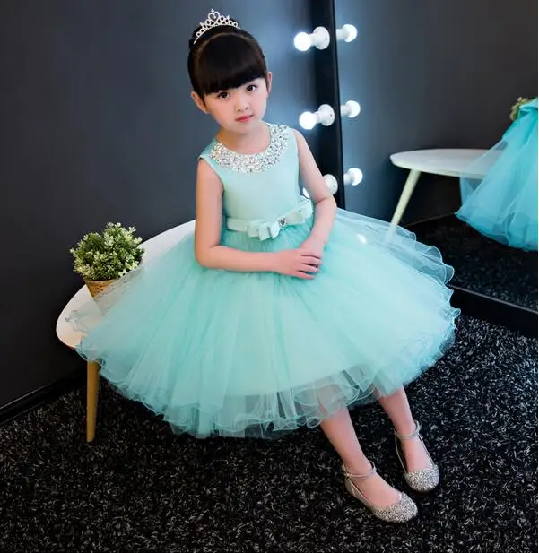 Us 13 72 24 Off 0 8 Age Children Wedding Dress Pink Red White Crystal Lovely Infant Clothing Baby Blue Flower Girl Dresses With Rhinestones Bow In