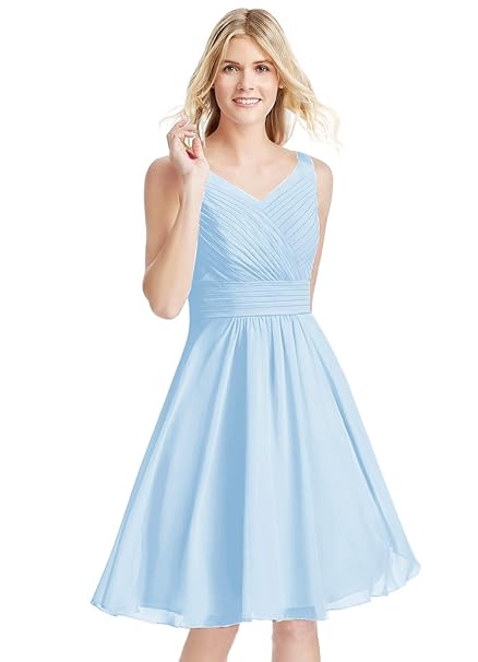 Kkarine Women S A Line V Neck Pleated Chiffon Bridesmaid Dresses Sleeveless Short Formal Homecoming Dress