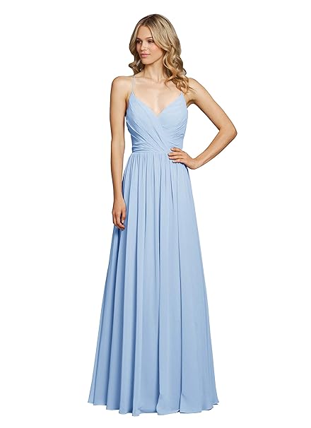 Women S A Line Chiffon Ruched V Neck Halter Bridesmaid Dresses Long Spaghetti Strap Formal Evening Gown