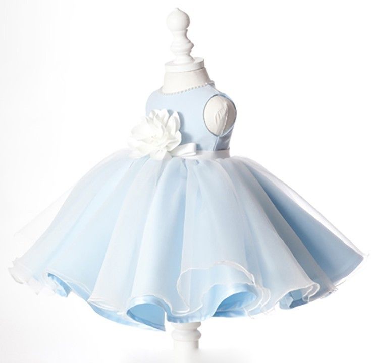 High Quality Light Blue Baby Girl Wedding Dress Girls Lace Tulle Party Birthday Dress Elegant Flower Girl Dress Princess Tea Length Flower Girl