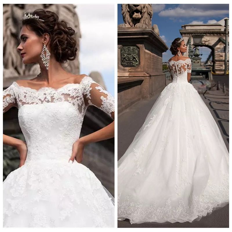 Us 145 99 Robe De Mariee 2018 Vintage Lace Dress For Wedding Off The Shoulder Long Sleeve Princess Bridal Gowns Train Vestidos Xnxee In Dresses From