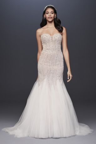 Beaded Tulle Sweetheart Trumpet Wedding Dress