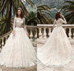 2017 A Line Wedding Dresses Elegant Garden Western Country Jewel Lace Vintage Bridal Gowns Appliques See Through Button Back Wedding Gownsa