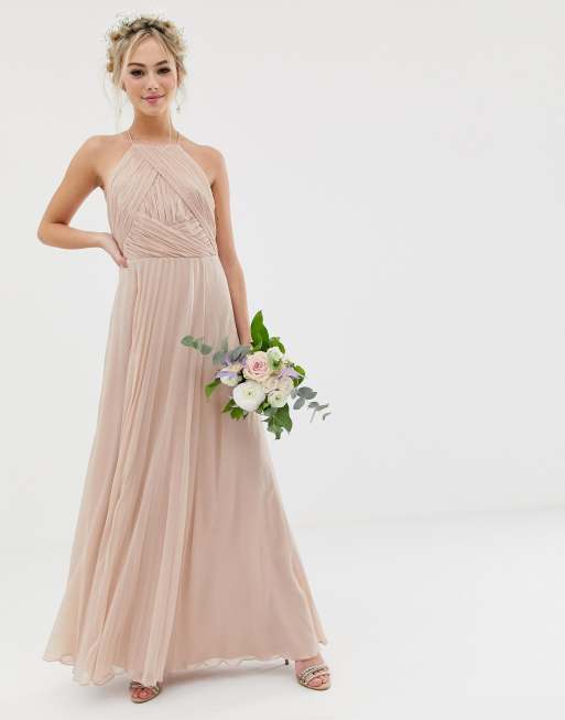 Asos Design Bridesmaid Pinny Maxi Dress With Ruched Bodice