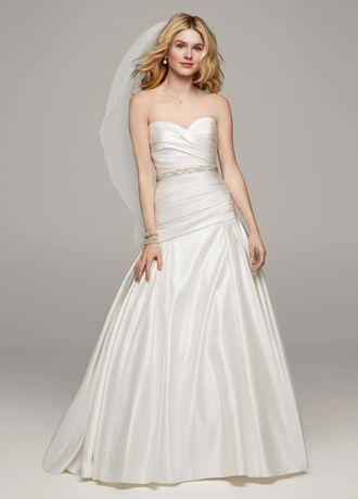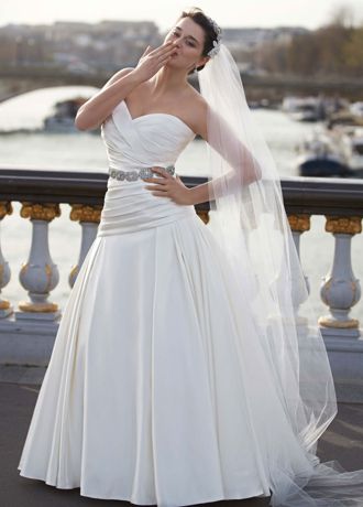 Satin A Line Wedding Dress With Ruched Bodice David S Bridal
