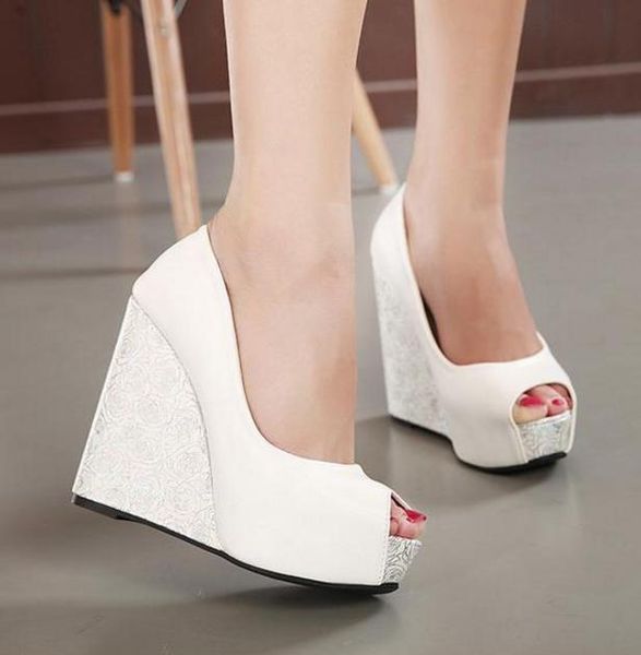 Sexy Cross Strappy Blue White Wedding Shoes Platform Wedge Sandals Peep Toe Bridesmaid Shoes Size 34 To 39 Wedge Shoe Boots Wedges Shoes Online From